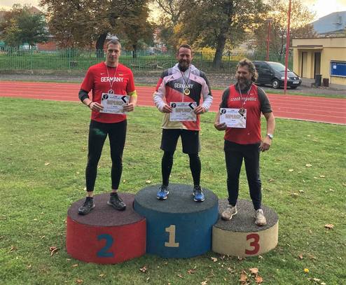 Im Team Germany knüpfte Hübner in Lovosice nahtlos daran an und holte sich im Steinstoß-Dreikampf, eine seiner Paradedisziplinen, den Weltmeistertitel in der Altersklasse M45 mit persönlicher Bestleistung von 26,81 Metern. „Die Bedingungen an diesem Tag waren sehr gut, und die Wettkampfanlage hatte die idealen Voraussetzungen für die Athleten!”, schwärmte Hübner. Der Steinstoß-Dreikampf wird in jeweils drei Versuchen mit unterschiedlichen Gewichten (7,26 kg, 10 kg und 15 kg) ausgetragen. Die Stoßtechnik ähnelt dem Anlauf beim Speerwurf und der Technik beim Kugelstoßen.
