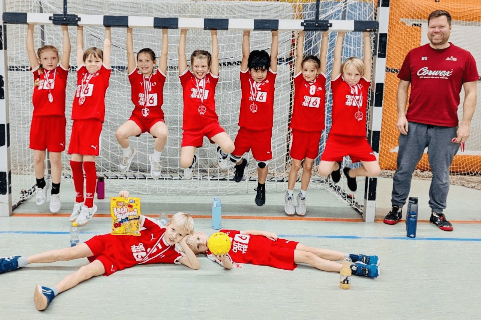 Mit dabei waren: Anton, Hannah, Julius, Lasse, Finn, Lilli, Luisa, Mathilda, Mehrdad und Niklas – ein starkes Team mit ordentlich Tempo im Blut 💪🤾♀️