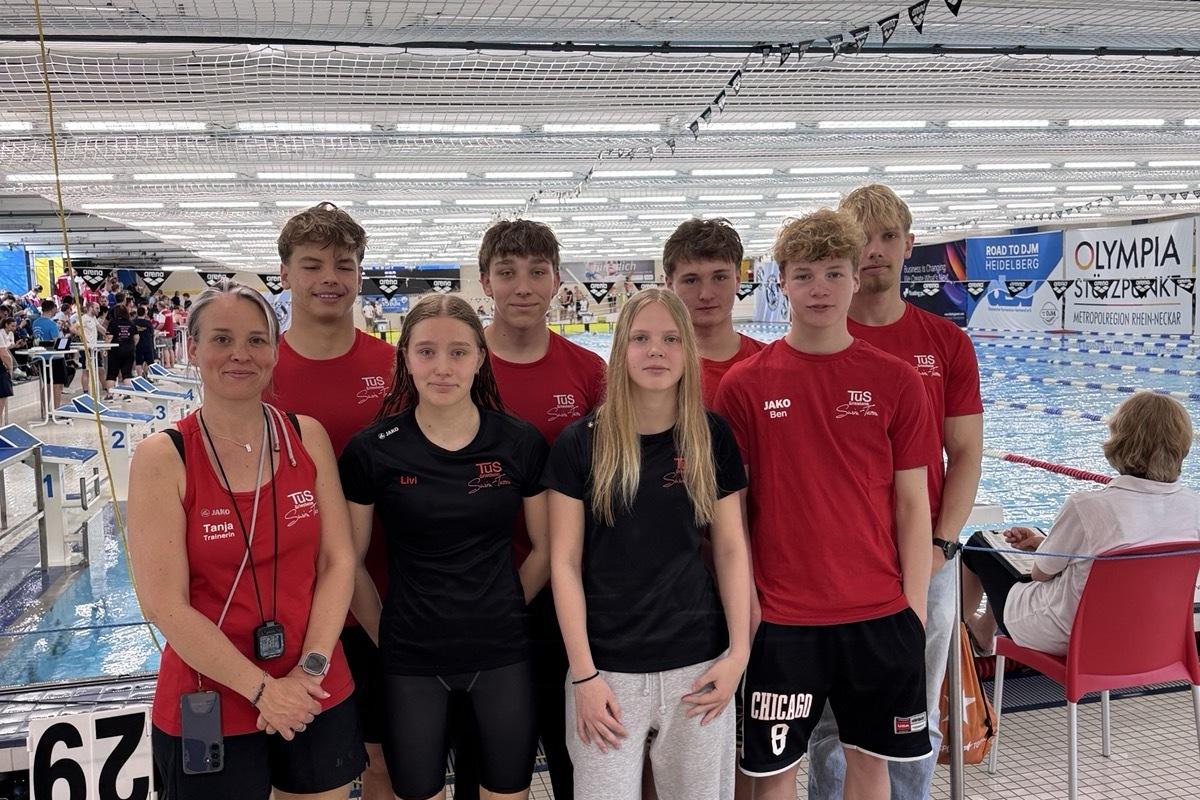 Die TuS-Schwimmabteilung schaut auf ein erfolgreiches Wochenende zurück. Das TuS Swim Team startete bei zwei parallel stattfindenden Veranstaltungen in Langen und Heidelberg. Sowohl beim Bahama Cup in Langen als auch beim Internationalen Nikar Quali Meet in Heidelberg zeigten die Schwimmer gute Leistungen. Beim stark besetzten Bahama Cup in Langen, an dem rund 800 Aktive teilnahmen, gingen Lars Eckert (Jg. 2016), Malte Eckert (Jg. 2012), Phil Milota (Jg. 2015), Caja Clüsserath (Jg. 2012), Lina Liv Dietz (Jg. 2013), Greta Eckert (Jg. 2014), Lina Fuchs (Jg. 2011), Sophia Fuchs (Jg. 2014) und Finja Löw (Jg. 2012) an den Start. Betreut wurden sie von ihren Trainerinnen Frauke Grönsfelder und Chirara Rausch. Alle 38 Einzelstarts endeten mit neuen persönlichen Best- oder Saisonzeiten, und Lars Eckert konnte sich eine Bronzemedaille über 200 m Rücken sichern.