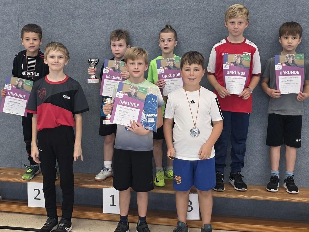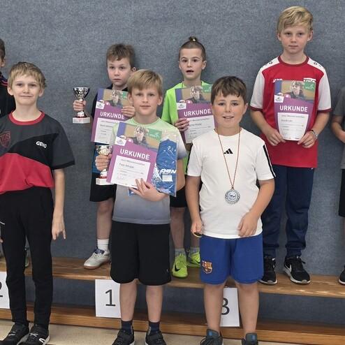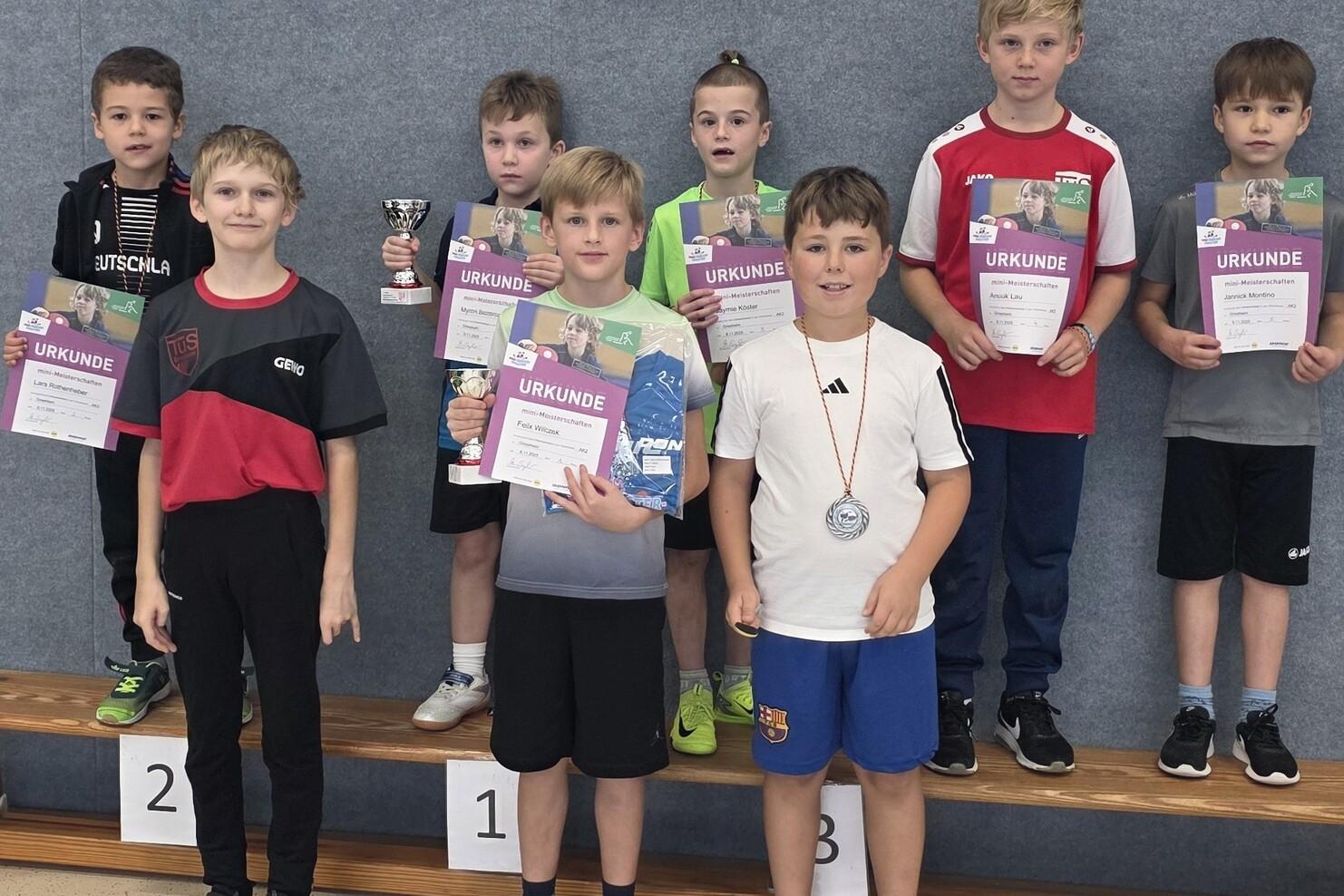 Alle Teilnehmer erhielten eine Urkunde, außerdem gab es Pokale, Medaillen und T-Shirts. Durch ihre Platzierungen haben sich die drei Erstplatzierten außerdem für den Kreisentscheid der Mini-Meisterschaften qualifizieren. Dieser findet Anfang 2026 statt, die Einladungen dazu erfolgen direkt an die Qualifizierten. Der TuS bedankt sich bei den Teilnehmern und den Helfern, die nicht nur die Kinder unterstützten, sondern auch dafür sorgten, dass mit Brezeln, Kuchen und Getränken keiner hungern musste.