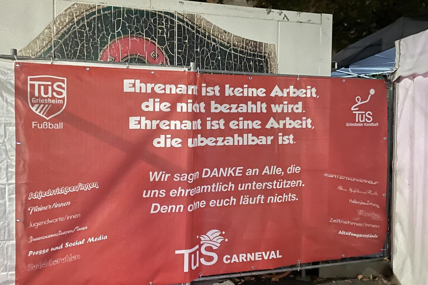 Am Freitag, 26.9., öffnete unser TuS-Zelt um 17 Uhr. Schon bald wurden die ersten Dschungelhütchen-Tabletts über die Theke gereicht. Auch die Kartenreservierung für unsere TuS-Sitzung und TuS-Ball startete zeitgleich und wurde hervorragend angenommen. Das Zelt war zwischenzeitlich so voll, dass ein Gang zur Theke fast unmöglich wurde. Wie im letzten Jahr begaben wir uns am Abend auf die Suche nach einem unserer „verschollenen Affen“ – die Hinweise dazu gab es über unsere Social-Media-Seiten. Den gelungenen Abend krönte unser Männerballett, das das Zelt mit Erfolg und sechs leeren Kartons Prosecco abschloss.