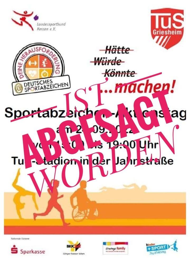 Der Aktionstag für das Deutsche Sportabzeichen am kommenden Samstag , den 24. September 2022 ist abgesagt worden.