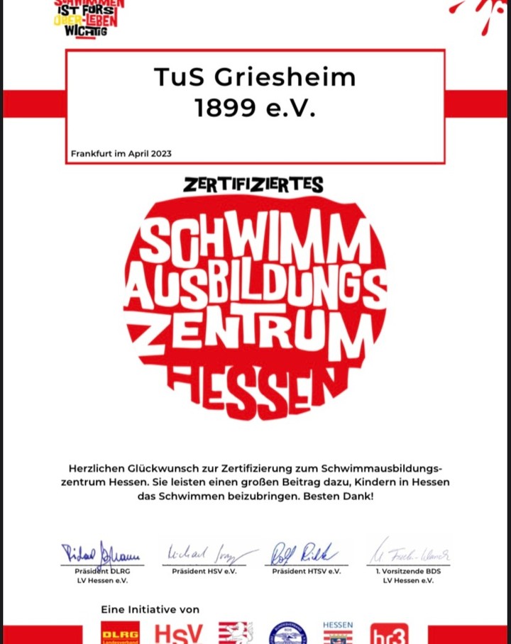 TuS Griesheim ist nun Teil der großen Initiative hessischer Sportverbände in Zusammenarbeit mit dem Hessischen Ministerium des Innern und für Sport und dem Hessischen Kultusministerium mit dem Ziel mehr Bäder und Vereine aufzufordern Schwimmkurse anzubieten, um so die Nichtschwimmer- Quote im Land zu verringern. #hessenlerntschwimmen#schwimmen#schwimmenlernen#nichtschwimmer#tusgriesheim#zertifizierung#vereinsleben