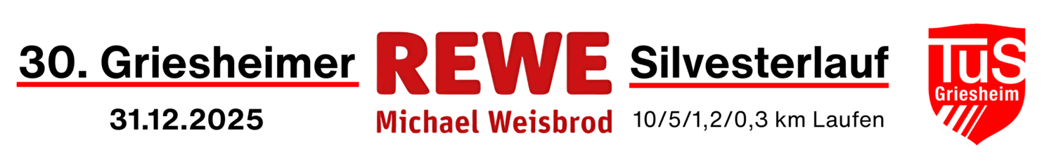 Einladung und Ausschreibung zum 30. Griesheimer REWE Michael Weisbrod-Silvesterlauf am Mittwoch, den 31. Dezember 2025 ab 10:30 Uhr in Griesheim bei Darmstadt.